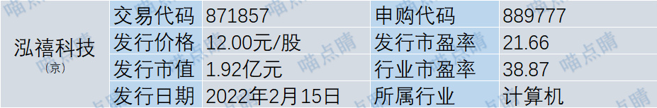 泓禧科技主营为高精度电子线组件以及微型电声器件的研产销,主要客户有仁宝、英业达、广达、联宝、纬创、华勤等,产品最终应用于惠普、联想、戴尔、华硕、宏碁等世界一流品牌。发行价和估值都还可以,我正常申购。