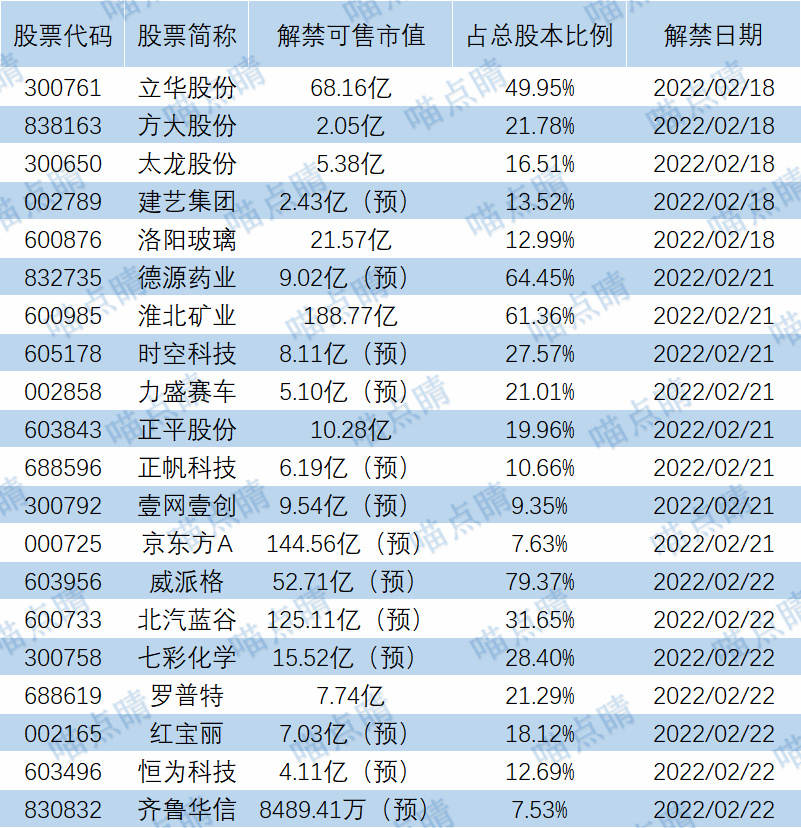 【限售解禁】