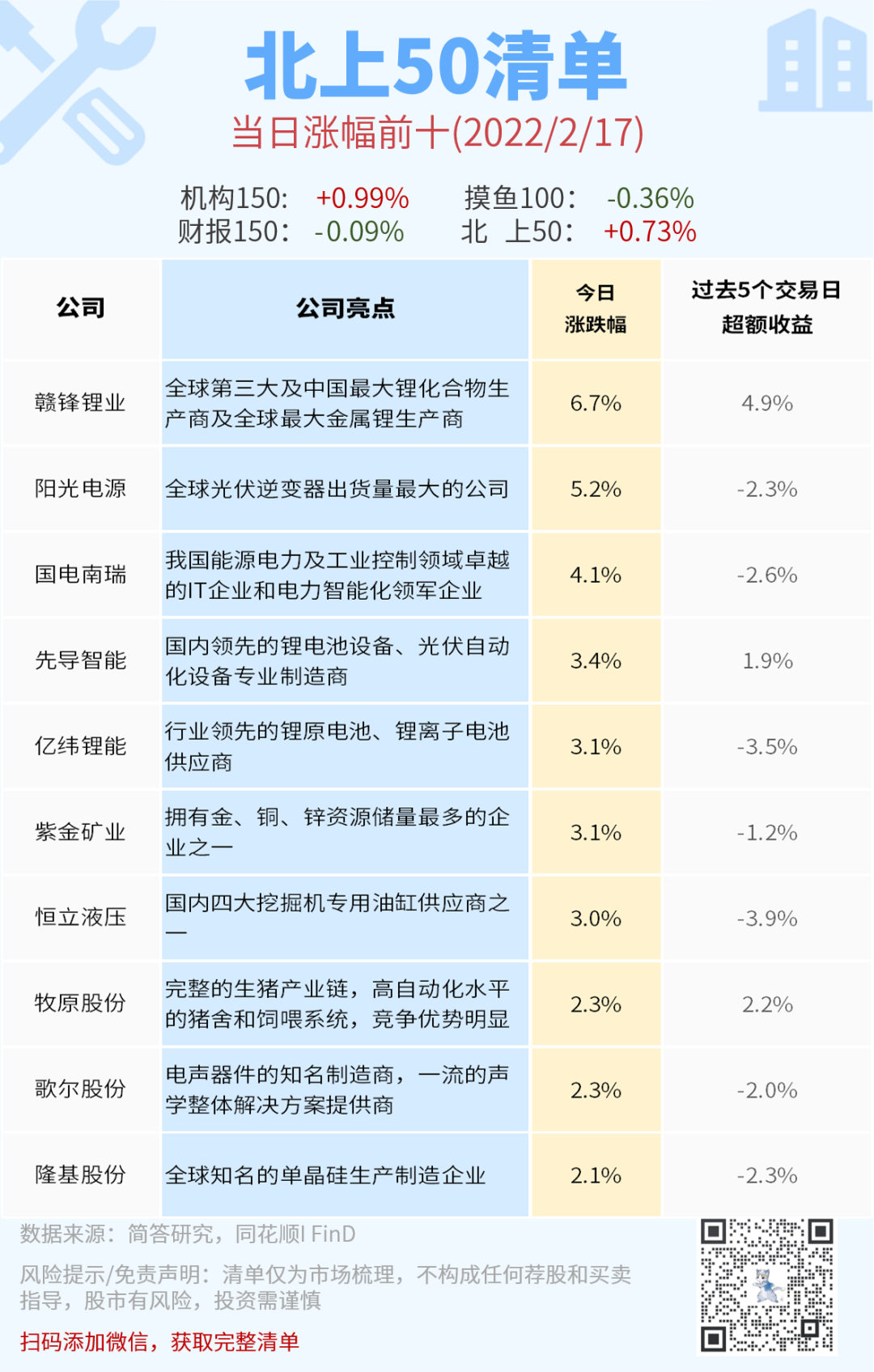 北上50榜单今天反弹前面的全是新能源方向,风格很明显。