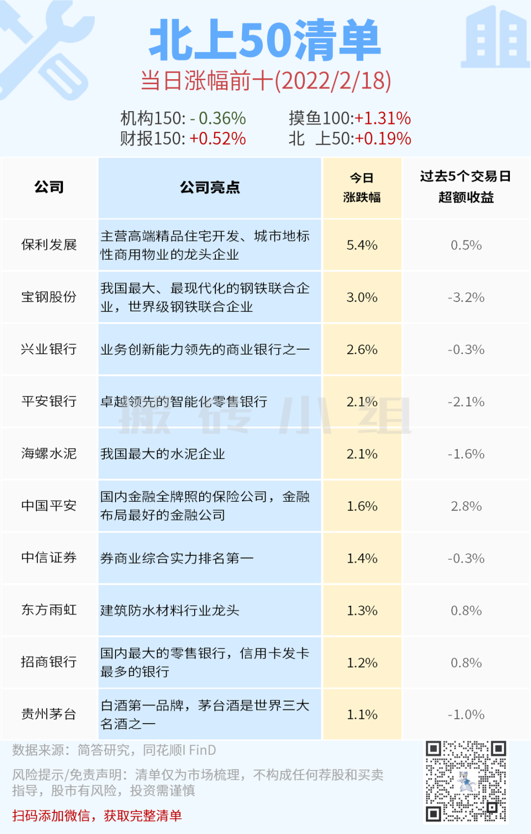 北上50榜单今天的风格非常明显,涨幅榜集中在价值方向。客观上讲,价值方向很多都已经走出趋势行情了,我们要重视市场给出的信号。