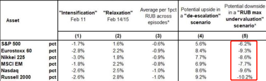 高盛自己还加了波戏,测算了一下如果真打起来各国资本市场的跌幅,其中纳指预计9.6%、MSCI新兴市场7.7%,不过这个看看就行了,和随便嘴炮的效果差不多。。而且即便他真乌鸦嘴中了,也不算啥特大的场面,毕竟今年纳指都有一次单周7.5%的跌幅了。