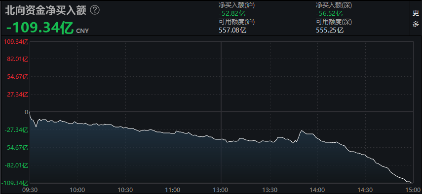 北上资金今天走得很坚决,全天流出了109亿,特别是下午深V反弹的时候流出得更快,这里北上连续3天的态度是非常偏空的。