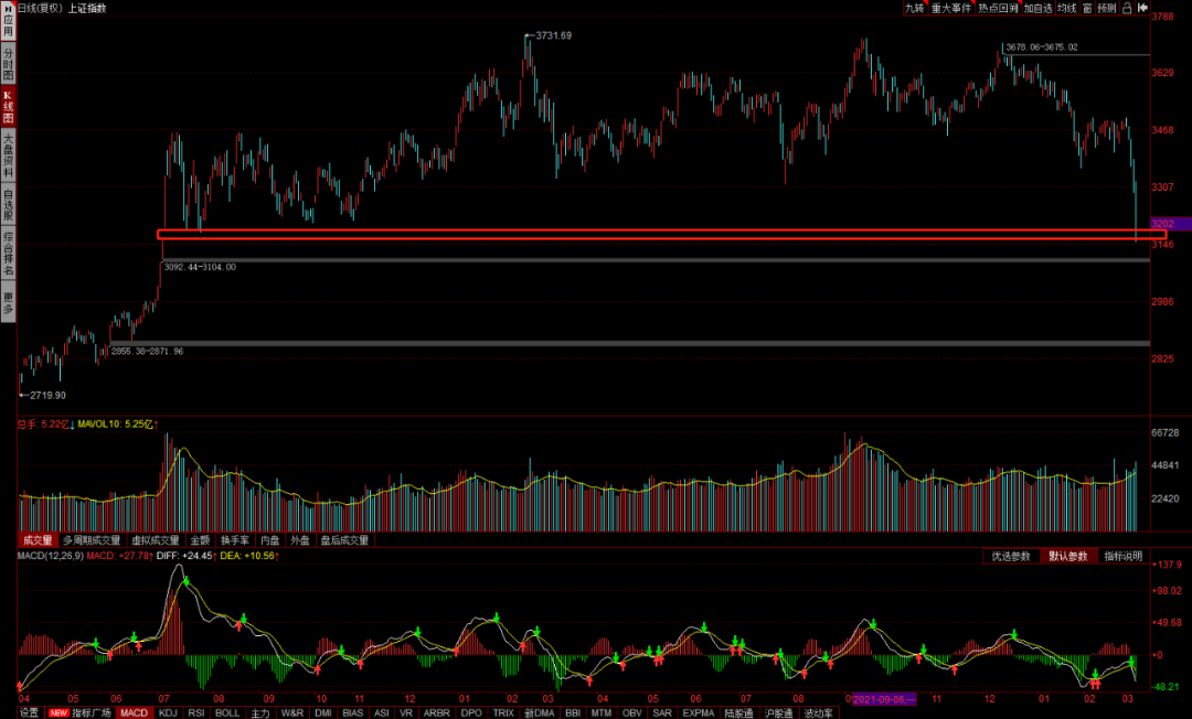 市场今天加速暴跌,上证指数补了20年7月的第一个缺口后迅速反弹,从图上看我认为这里支撑是比较好的,