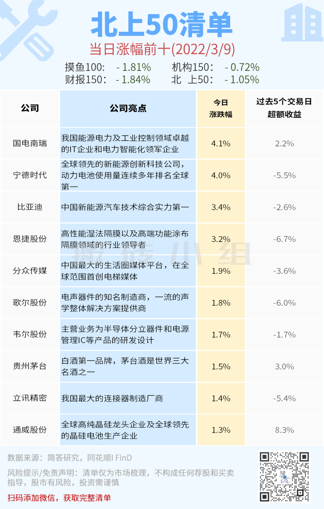 北上50榜单今天表现得还行,新能源车反弹幅度比较大,机构这边的反弹急先锋还是得靠成长啊。