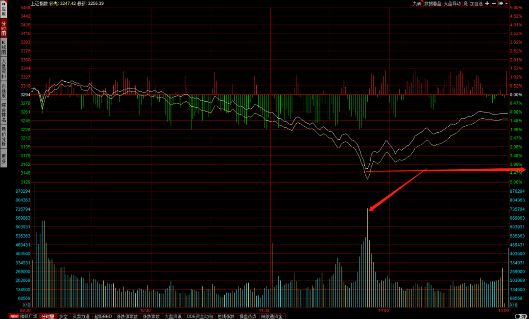 今天市场惊天大波动,上午一小时还是窄幅震荡,随后市场从缓跌到恐慌式暴跌,最后一个小时又剧烈抄底反转,今天这个深V下影线真是太猛了!
