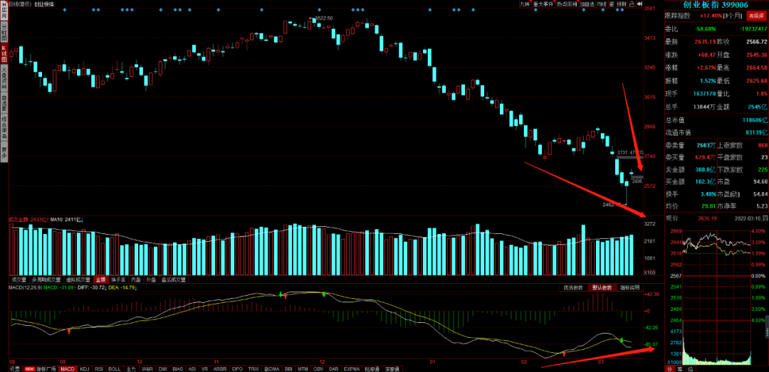 日线看这里是超跌反弹,创业板有底背离的可能,但今天的缺口是个隐患,后几个交易日回补的概率还是比较大的。