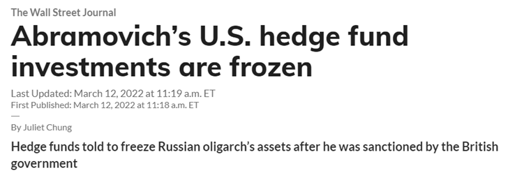 之前跟大家聊到俄罗斯富豪阿布被迫出售切尔西俱乐部,现在又有了新进展,英国政府直接冻结了阿布在英国的全部资产,想卖都卖不掉了。另外,阿布在美国也被围剿,持有的美国对冲基金遭到冻结,账户被禁止交易,钱也拿不住来了。
