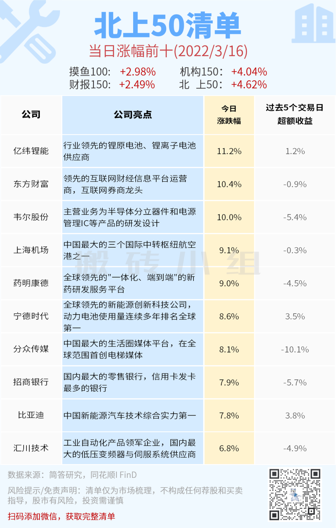 北上50榜单今天大反弹,能说的不多,反正就是各种涨。