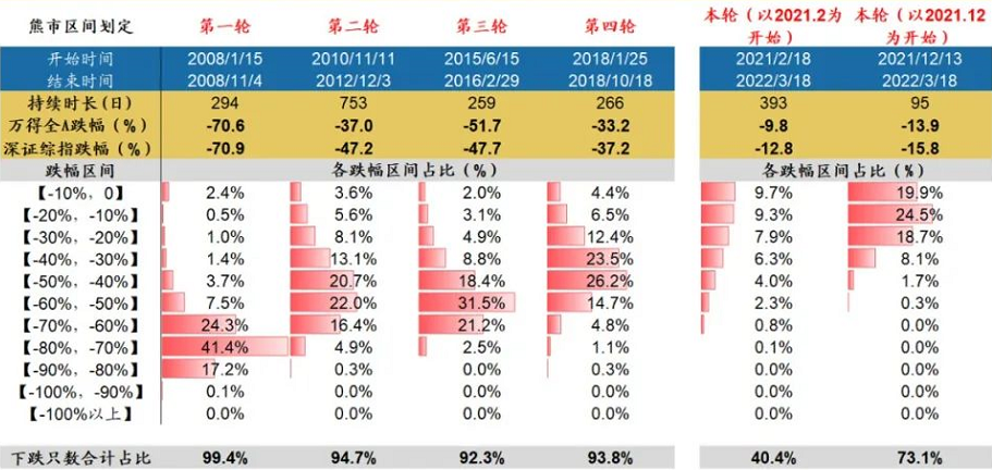 说回眼下,现在市场上很多声音都在讨论市场底,周末看到广发做了个统计,把历史上的熊市阶段都拿出来作了对比,结果发现无论从调整时间还是力度,自去年底至今的这一轮杀跌都无法和过去几轮相比。