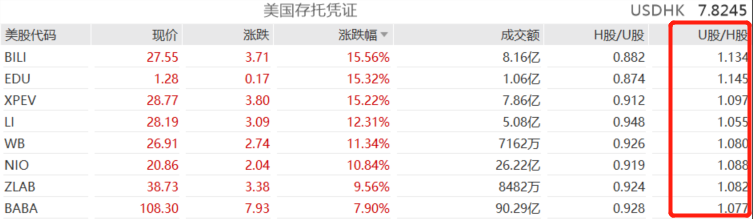 补充个冷知识,由于ADR和普通股间存在了转换机制,所以同时在港股和美股上市的中概不会有持续的折溢价出现,否则会有套利可能。其中一个市场大幅波动造成的折溢价,往往都会在另一个市场交易后抹平,这和AH市场长期存在明显的折溢价有着很大区别。