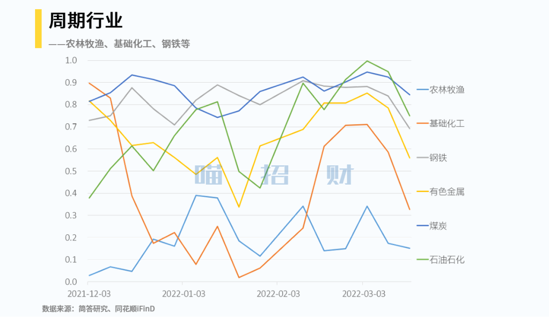 其他几个大类行业有点乱,市场这里没有明显的线条出来,需要的菜单栏回复“行业拥挤度”就可以获取了。