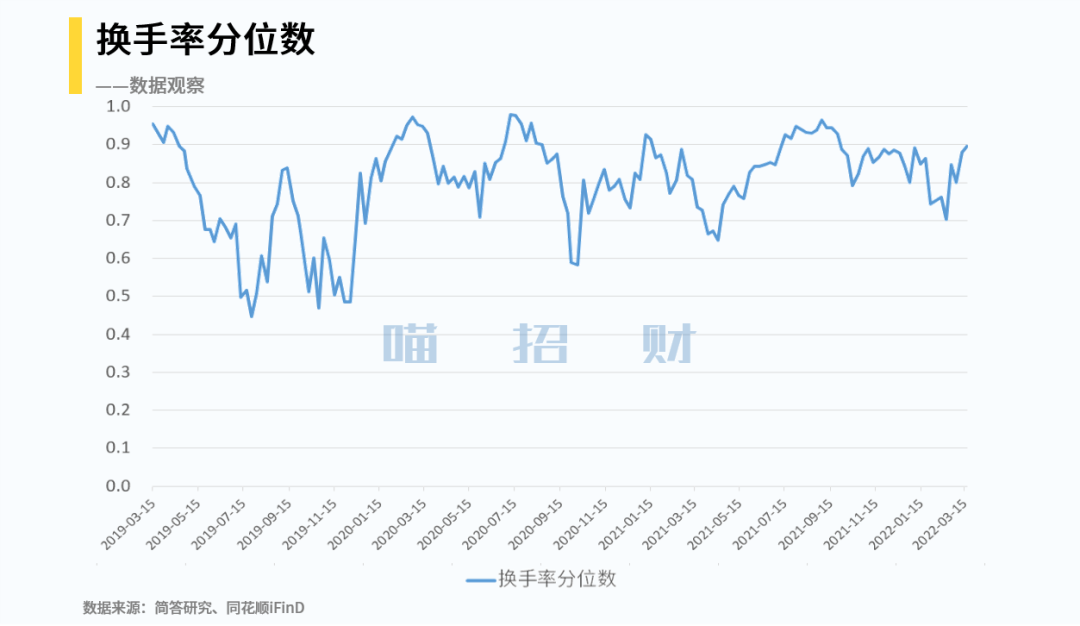 到上周五,全市场换手率分位数抬升到了90%,说明在场的资金交易非常活跃,也是因为上周超级大波动导致的换手率提升。但非增量市场下换手率抬升的持续性是比较差的,结合市场前段刚高波震荡完,后面市场交投降下来是大概率事件。