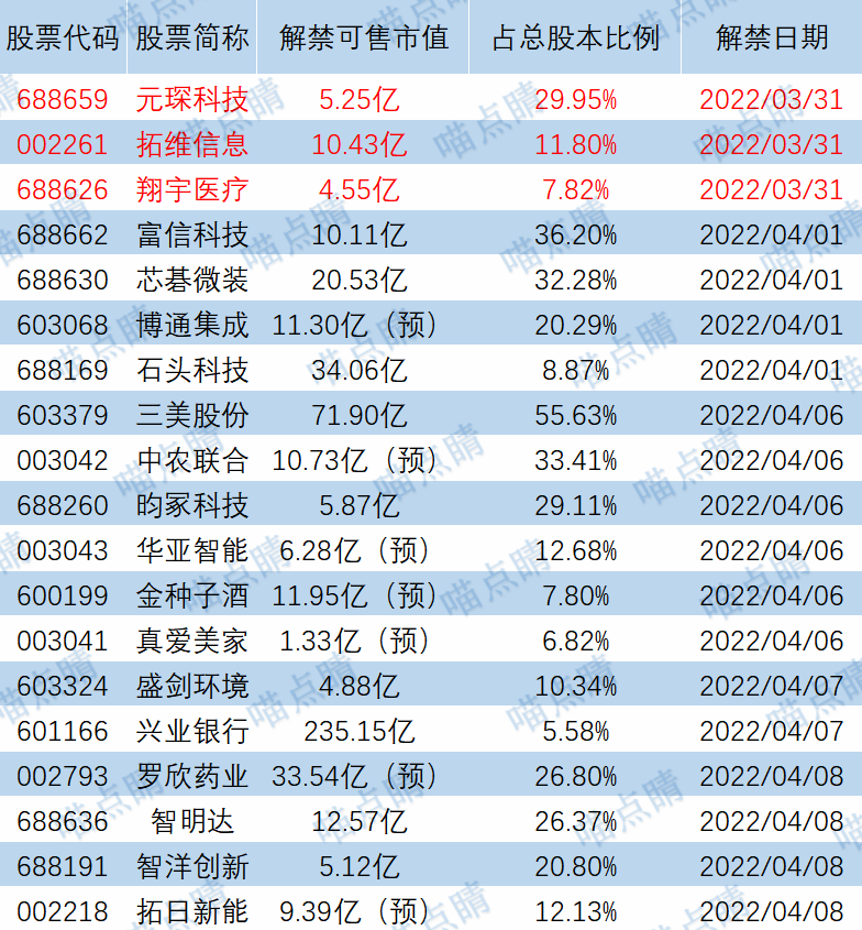 【限售解禁】