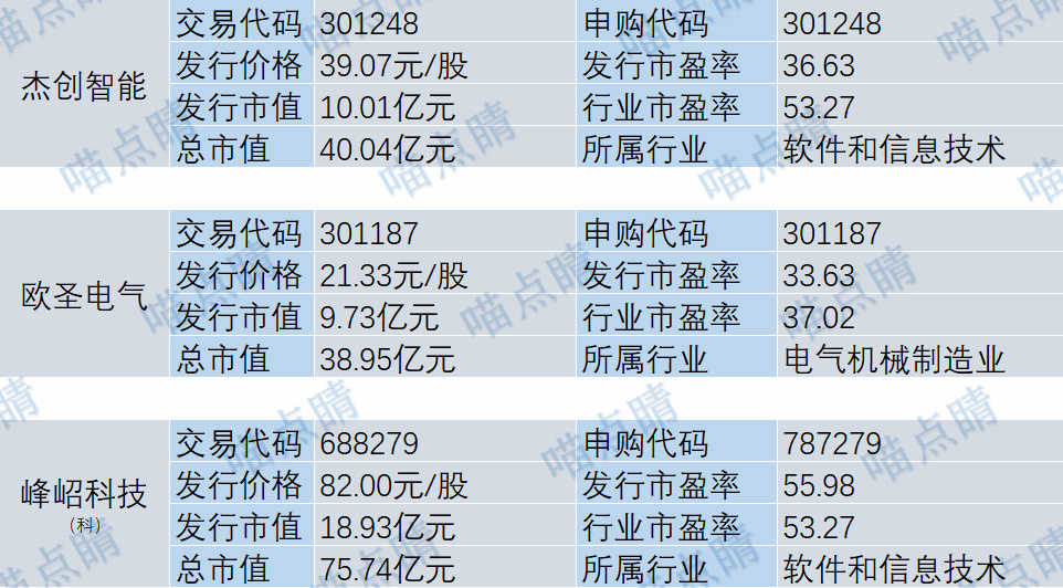 杰创智能致力于推进物联网、人工智能等新一代信息技术在智慧城市、智慧安全领域的产业化应用,为客户提供全周期综合解决方案;欧圣电气主营业务为空气动力设备和清洁设备的研产销,主要产品为小型空压机和干湿两用吸尘器。这两个发行价估值都还行,我正常申购。