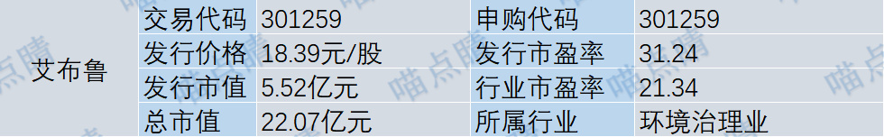 艾布鲁致力于解决农业农村中的污水、固废、土壤污染及生态问题,开展农村生活污水处理、生活垃圾处理、农业面源污染治理、污染耕地管控修复等业务。发行价和估值都不算高,我正常申购。