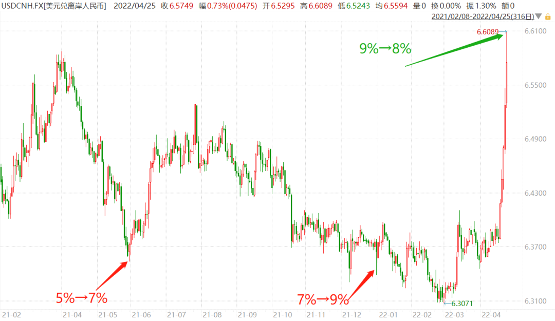 值得一提的是,去年5月末和12月末,我们还因为RMB的升值压力而上调过两次这个准备金率,当时的环境是美联储宽松,加之国外疫情下我们的出口猛增造成明显顺差。现如今画风突变,不得不让人感慨。。