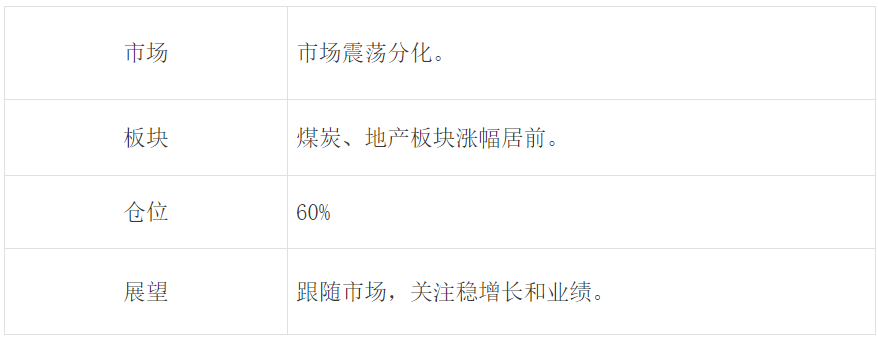 策略上当前保持仓位跟随市场。结构上延续配置稳增长;成长方向做好去弱留强,业绩依然是选择成长的重要标准。