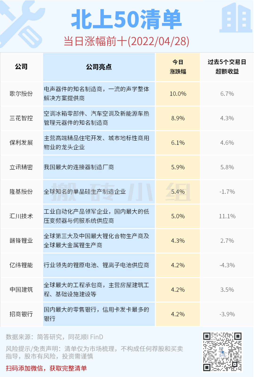 北上50今天表现还算可以,涨幅前二都是披露业绩比较好的,业绩线的逻辑不多说。
