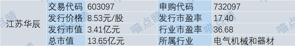 江苏华辰主要从事输配电及控制设备的研产销,主要产品包含干式变压器、油浸式变压器、箱式变电站及电气成套设备等。发行价和估值都不高,我正常申购。