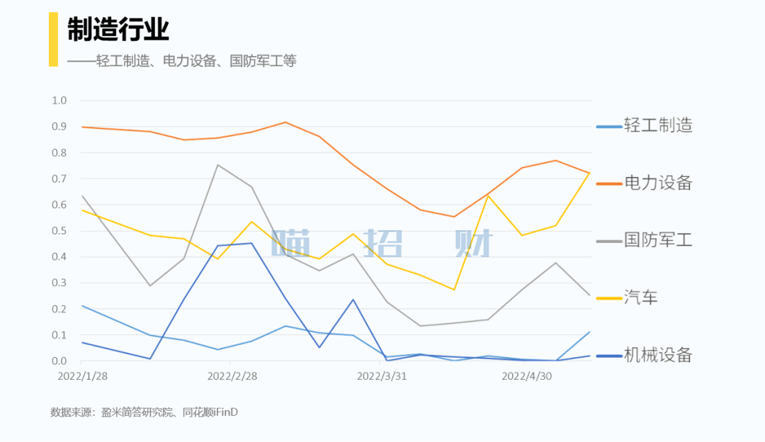 大制造板块汽车拥挤度有比较大的抬升,逻辑还是复工复产+消费刺激预期。正常板块整体就是找了利好反弹,还没有形成整体拥挤度提升的趋势。
