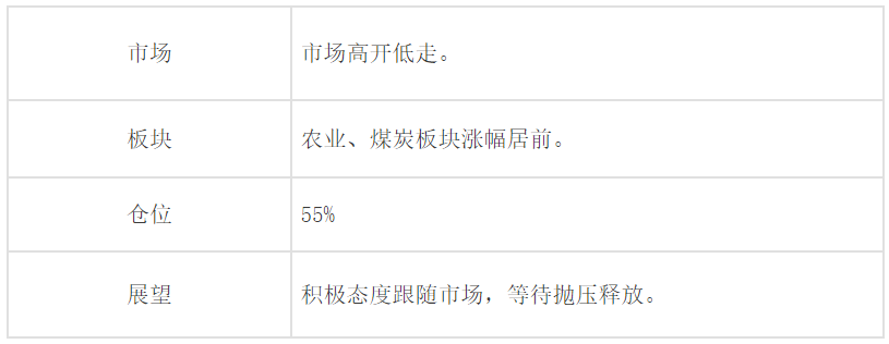 市场今天高开后创了反弹新高,这个反弹的ABC结构越来越有结束的感觉了,当下技术上看是需要震荡进行抛压释放的,这里保持好震荡的预期,交易上注意减少追涨就好了。