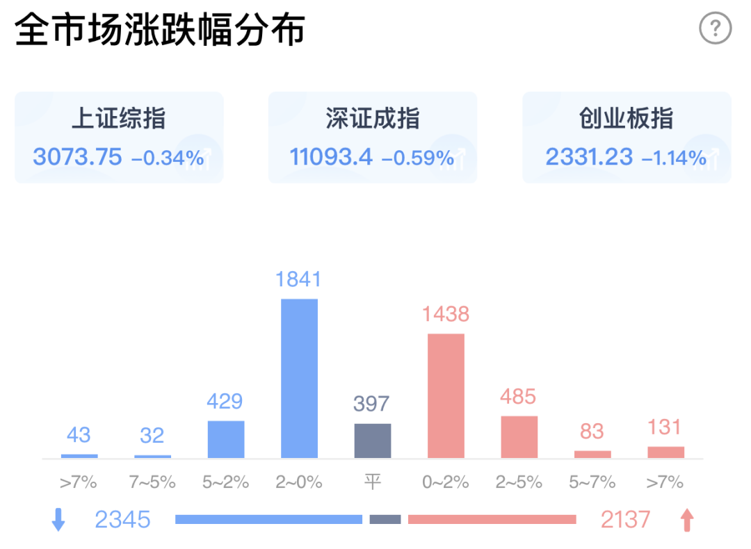 聊回来,指数今天高开低走,表现比较一般,个股上也是涨跌参半,整体市场呈现震荡格局。