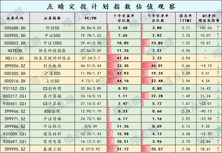 下面照例分享下点睛组合重点关注的指数以及数据情况,至于组合的详细情况,大家可以点击文章左下角的【阅读原文】查看,或者在且慢里边搜索【点睛定投计划】进行了解。