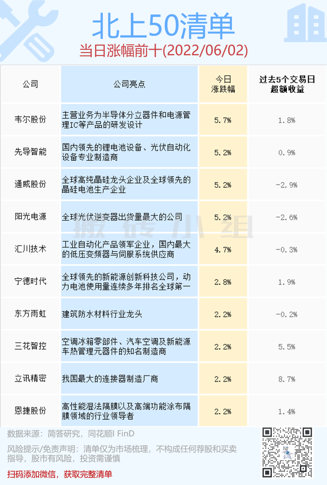 北上50榜单今天表现还可以,基本都是成长品种领先,成长风格延续。