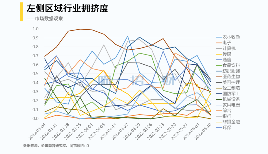 规则在下面重新声明一下,我用拥挤度指标把行业分为了四个区域,分别是热门、机会、预备和左侧。