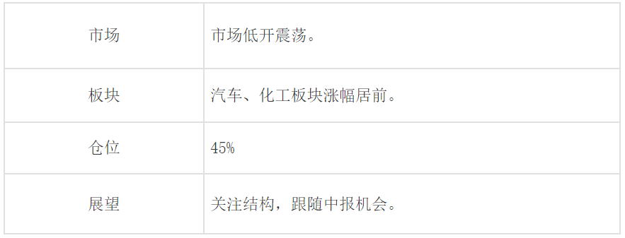 策略上,由于宏观当下出现了重要变动,并且关注的周期和汽车都已经进入流动性挤仓的加速阶段,所以减仓5%作为应对。
