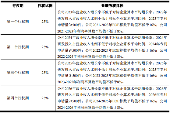 公司发布22年股权激励计划,拟向激励对象授予1310万份期权,行权价为160.22元,较最新收盘价折价41%,这在股权激励中属于常规操作。而公司的行权目标有点别致,并没有营收及净利的目标,更多是与同行比较、经营质量的相关目标,更立体全面些。