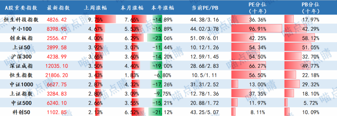 下图是重要宽基指数的复盘数据情况,全部一级行业的数据我们放到了后台,大家先点个在看支持下,之后消息栏回复【行业复盘】,即可获取~