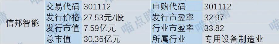 信邦智能是汽车行业领先的机器人智能制造系统集成商,主要从事汽车智能化、自动化生产线及成套装备等的研产销。发行价和估值都不高,我正常申购