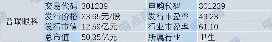 普瑞眼科主营业务为向眼科疾病患者提供专业的眼科医疗服务,公司产品或服务主要包括屈光项目、白内障等项目,具体包含了屈光手术、医学验光配镜、白内障等眼科全科诊疗项目。发行价和估值都可接受,我正常申购。