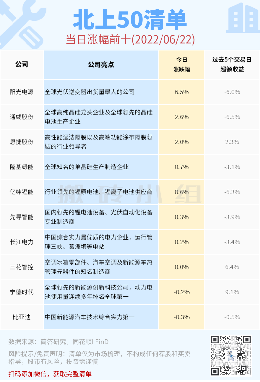 北上50榜单今天非常惨烈,只有8个红盘,近乎没有机会。