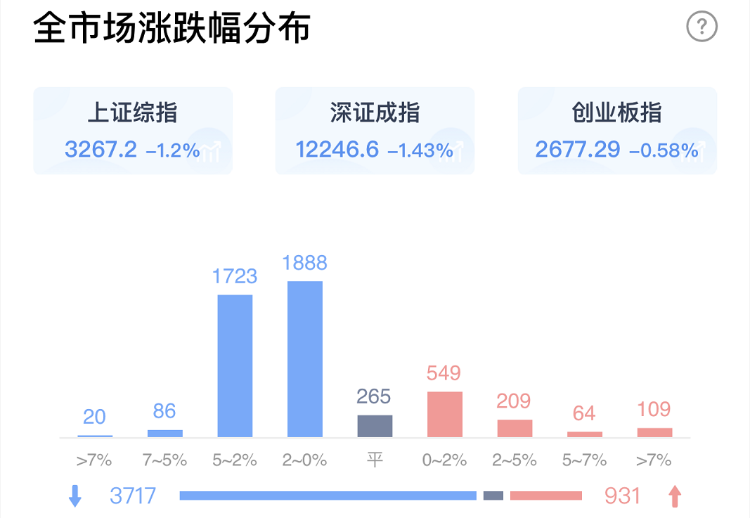 聊回来,市场今天震荡下跌,指数都跌了一些,个股层面比较惨烈,超过3700家公司下跌,这周三天真是不容易啊。。