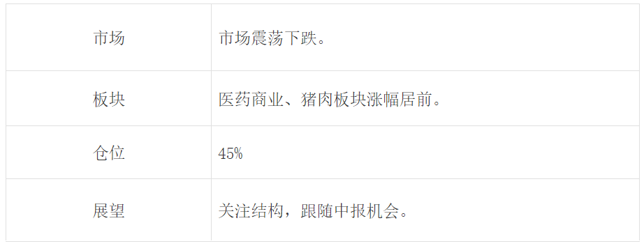 策略上,当前继续保持仓位跟随市场,结构上偏防守一些,消费医药这部分刚性需求的可能会比较合适。