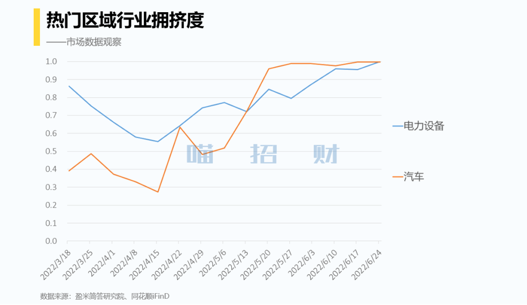 热门区域只剩下电力设备和汽车两个方向了,从盘面也能感知,这两个方向就是最强主线,当下我还没有看到哪个行业可以抢这两个方向的风头。