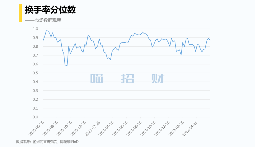 周一照常聊拥挤度数据,全市场层面,换手率分位数震荡,依然保持偏高流动性的环境,问题不大。