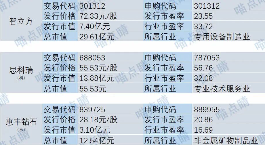 今天有三个新股,智立方专注于工业自动化设备的研产销,主要客户包括苹果公司、Meta、歌尔股份、鸿海集团、立讯精密等;