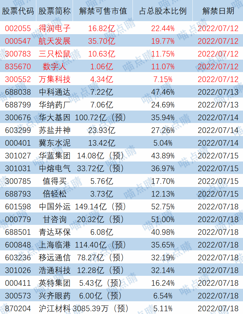 【限售解禁】