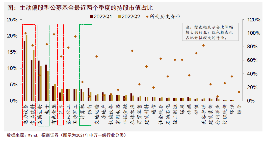 2、加仓的方向,从一级行业看,主要加的是电力设备、食品饮料和汽车;减仓的方向主要是医药、电子、计算机、银行。