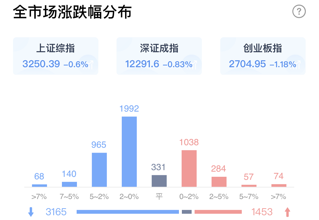 市场今天整体调整,各大指数继续小阴线,全市场超过3100家下跌,延续普跌格局。讲真最近这市场是真不舒服,不大涨,跌也不痛快,沪深300就一个阴跌走势,很有钝刀子割肉的感觉。。