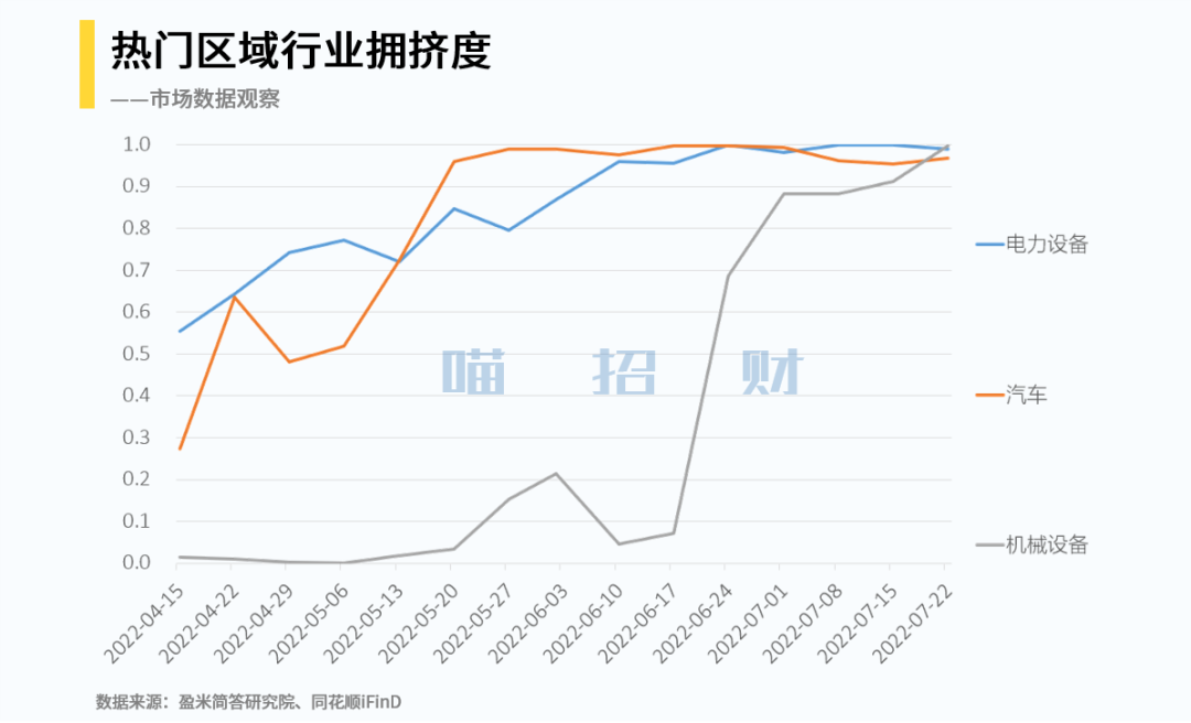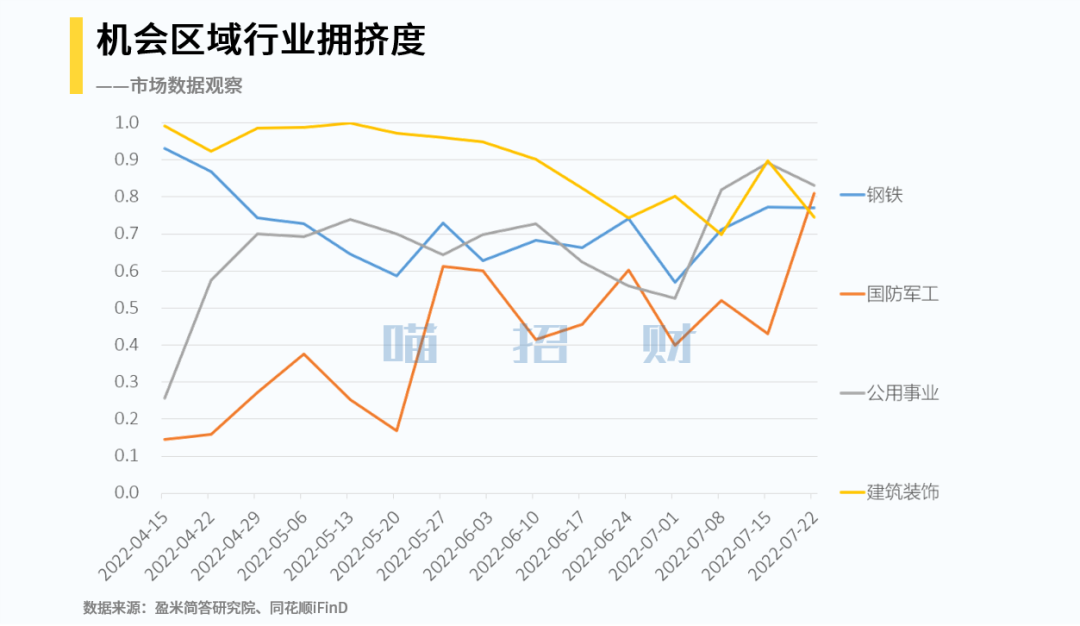机会区域里,军工拥挤度提升得很快,右侧角度是依然可以关注的,跟着交易纪律走就是了。