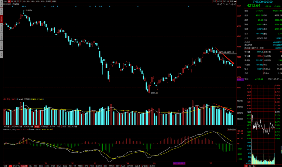 市场当前缩量阴跌,没有主线方向,短期交易赚钱困难,放平预期是比较好的做法。从技术上看,要打破这种阴跌,要么就是有多头进来中断,要么就是空头来一次短期的快速释放,会怎么走不好说,边走边看吧。