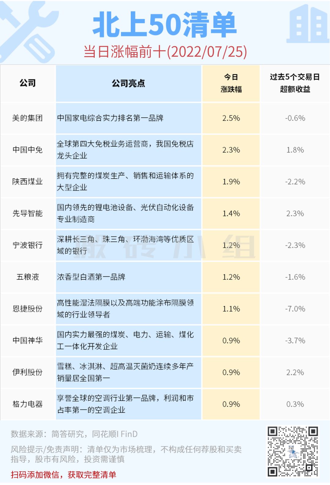 北上50今天上榜的大多都是价值方向,市场防守心态比较明显。
