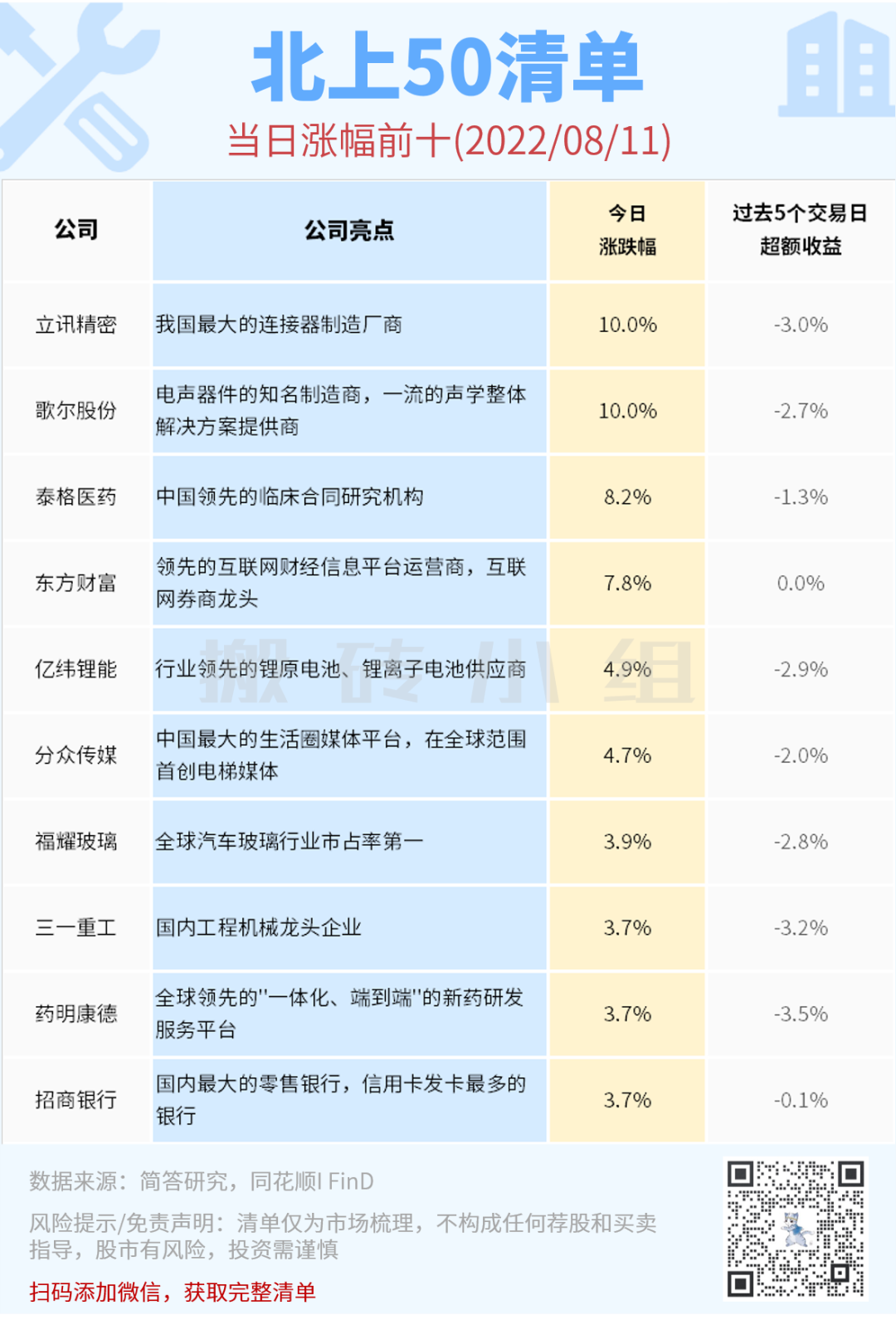 北上50榜单今天表现非常亮眼,涨幅在前面的都是茅指数成分,今天蓝筹们算是回来了!