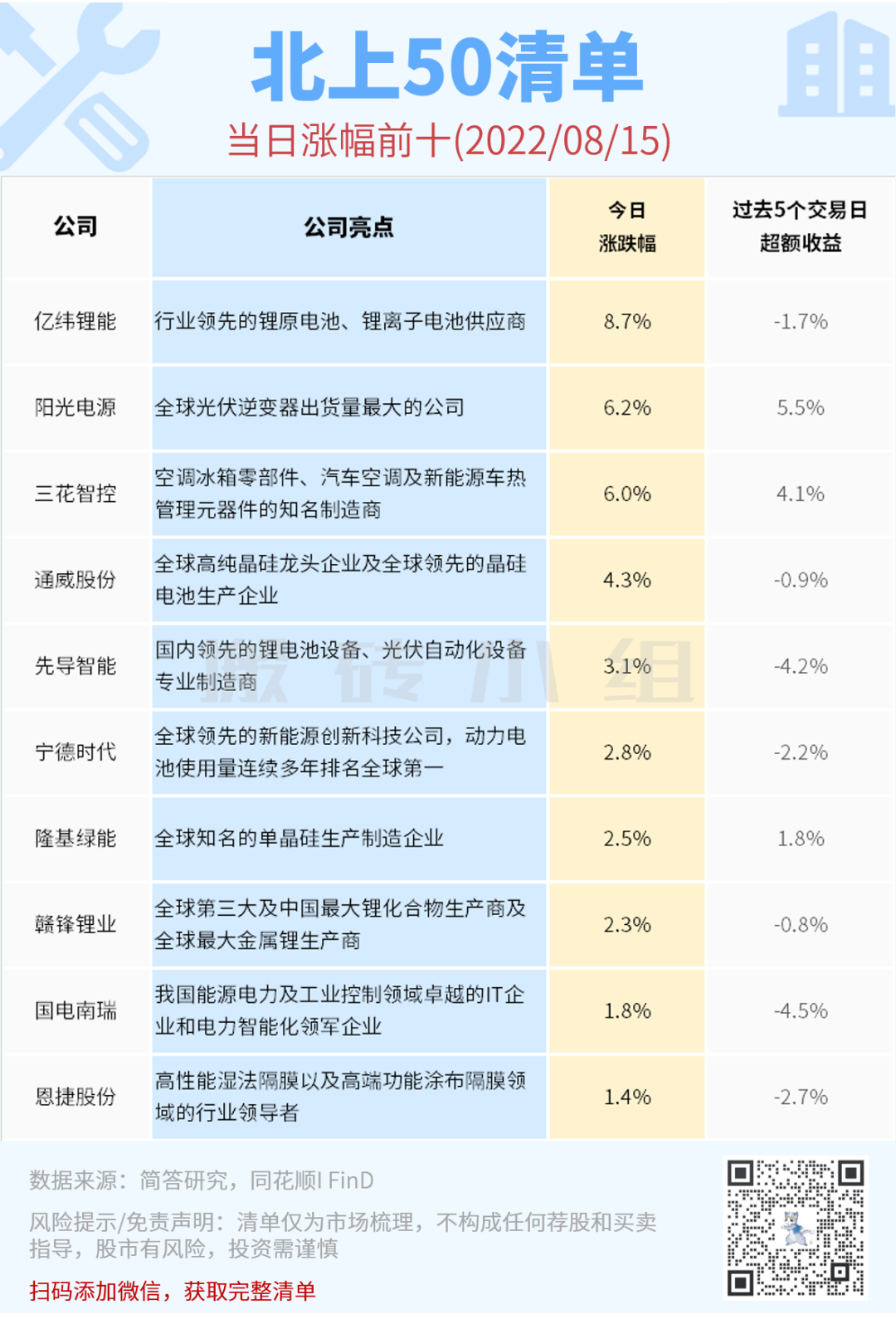北上50榜单集中在新能源上,主要是受到了法案的刺激。