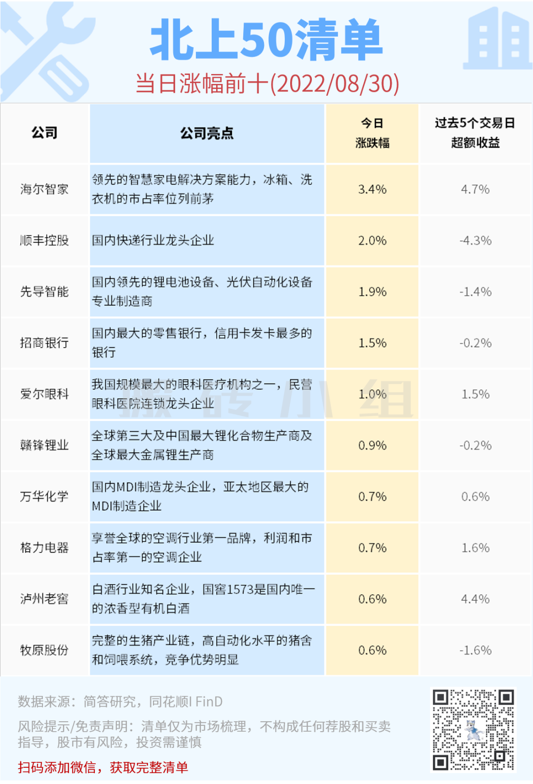 北上50榜单表现也比较无聊,波动很小,涨幅第一的海尔昨天出了个超预期的业绩,今天的上涨是对业绩的反应,日线看依然是震荡格局。
