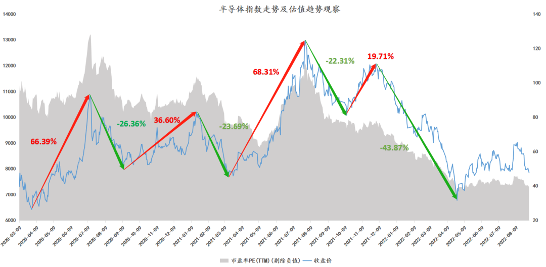 3、半导体指数此轮下跌幅度已达44%,此前的最大回撤为26%,板块最惨前十平均跌幅71%,惨王汇顶科技杀跌87%。